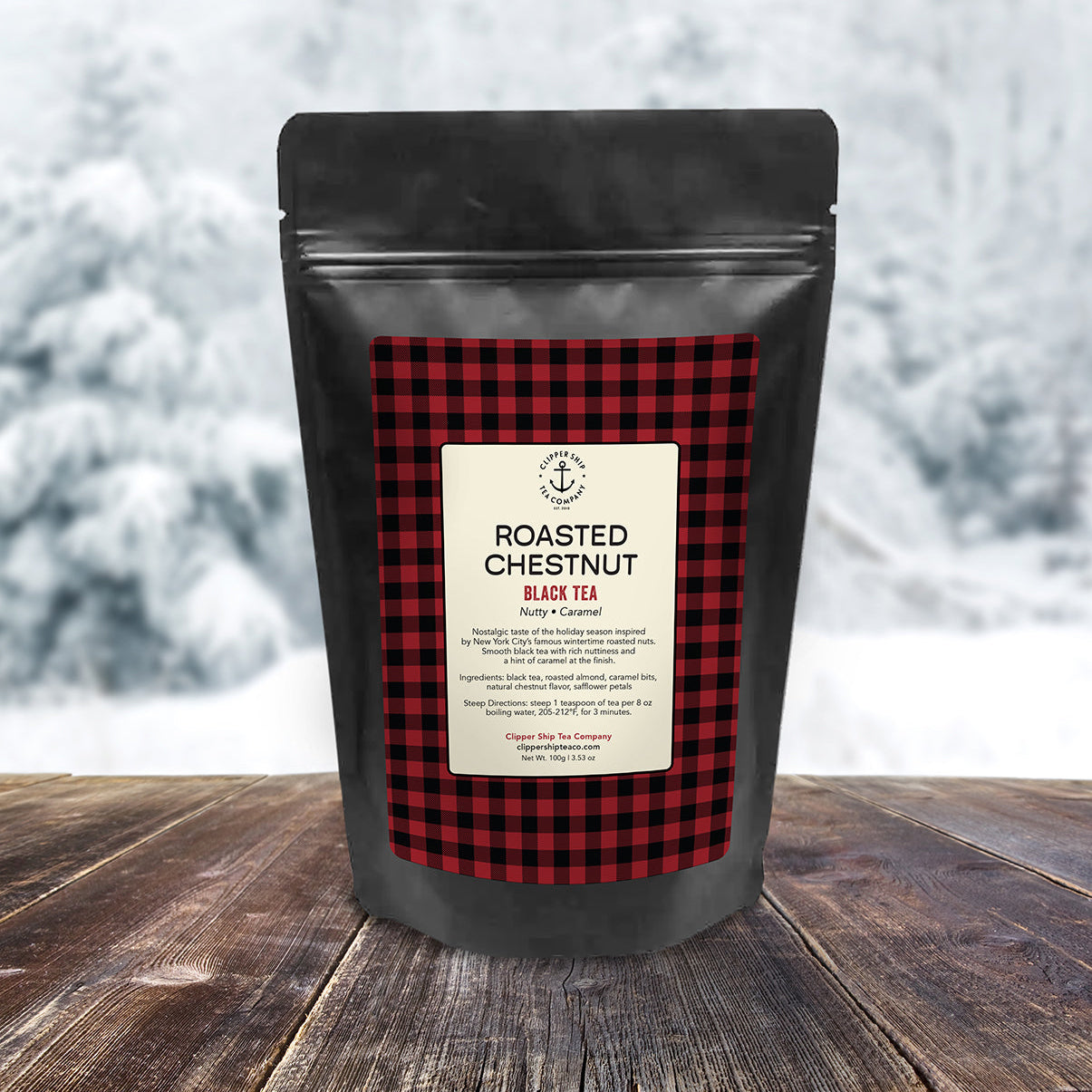 Description: A cozy black tea inspired by the warmth of roasted chestnuts on a winter evening. Smooth and rich with a toasty sweetness, it captures the nostalgic flavor of chestnuts roasting over an open fire.